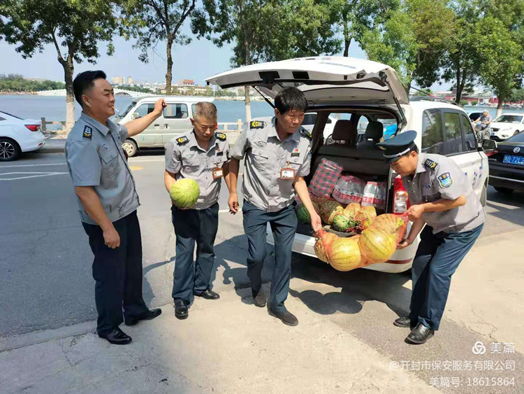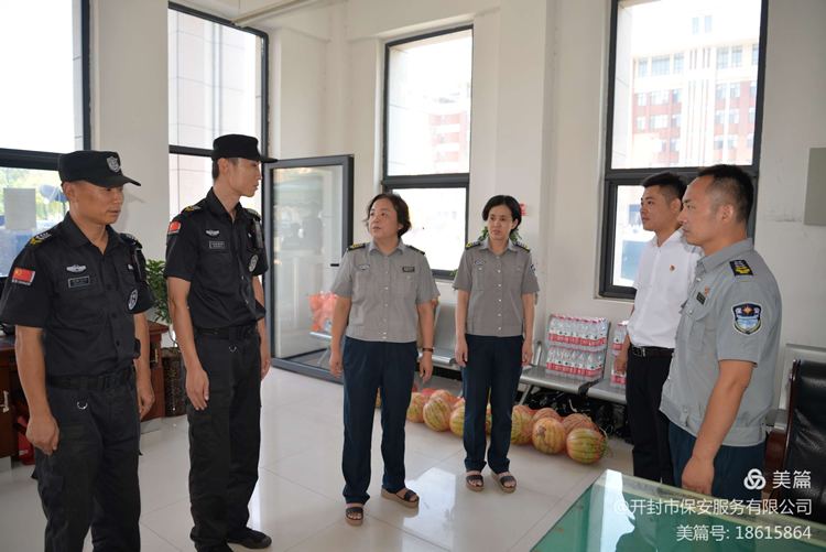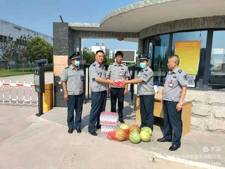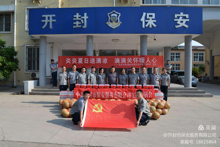 夏日炎炎,開封市保安服務有限公司為更好踐行“我為群眾辦實事”活動,深入貫徹落實黨和政府關于安全發(fā)展、和諧發(fā)展的要求,充分體現(xiàn)公司對員工的關愛之情,7月30日,開封國投副總經(jīng)理孫國杰帶領全體黨員、中層管理人員分四組走訪慰問一線員工,積極開展“我為群眾辦實事.關愛員工送清涼”慰問活動。